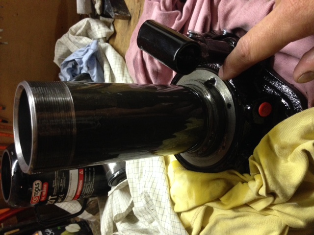 J'ai effectuer un petit trou vers la tête du cric afin de recréer le trou d'origine de "mise à l'air libre" car celui d'origine sera alors sous l'huile.