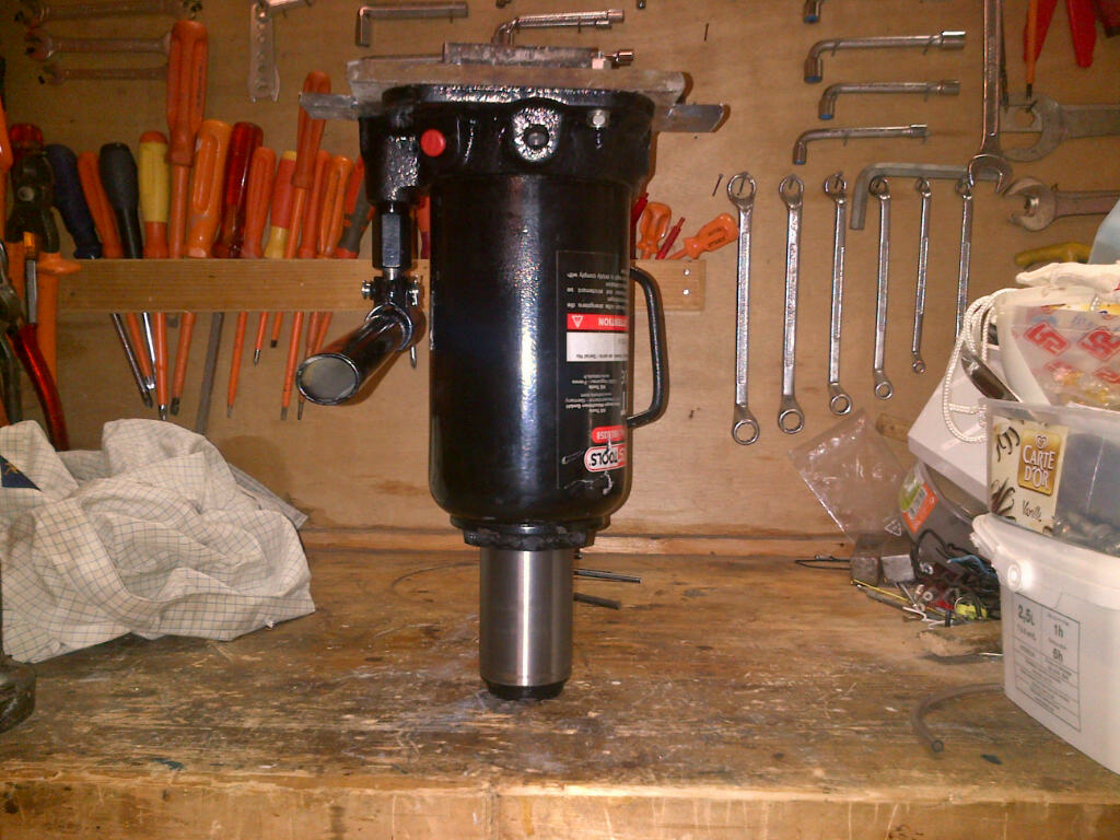 Maintenant il me reste à trouver un cric bouteille hydraulique et le modifier pour qu'il travaille la tête en bas (contrairement aux presses du commerce).