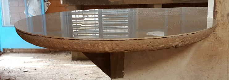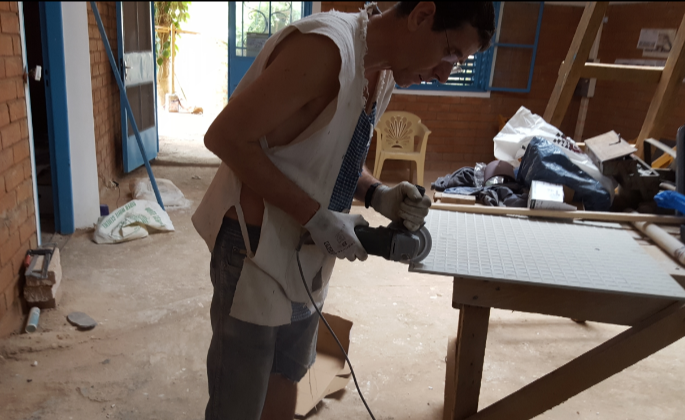 Le carrelage est maintenant fini, il reste encore les joints et la découpe du cercle de la table.