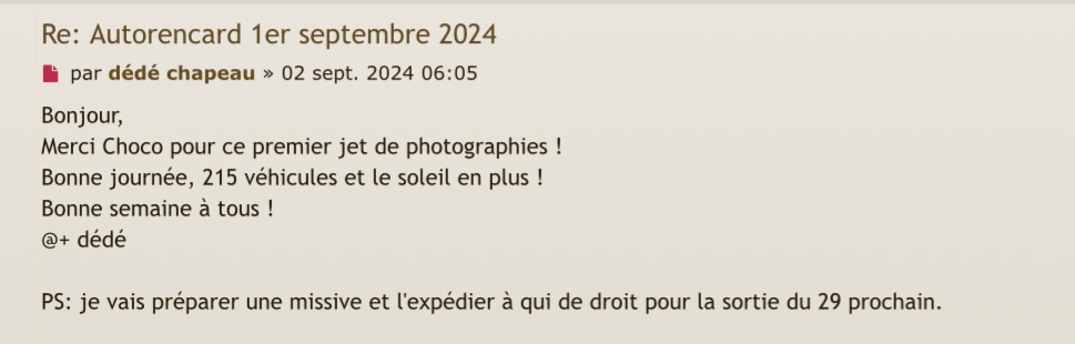 dédé chapeau a écrit : 29 sept. 2024 17:54 Bonsoir Choco,