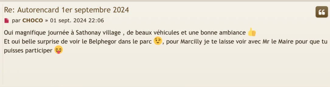 Un grand merci à tous pour votre présence , j’avais annoncer à mes potes que le Lyon 2cv club allait arriver en force , et bien vous m’avez pas fait mentir ! Cette 3e édition a été comme les 2 précédentes : une réussite 👍
