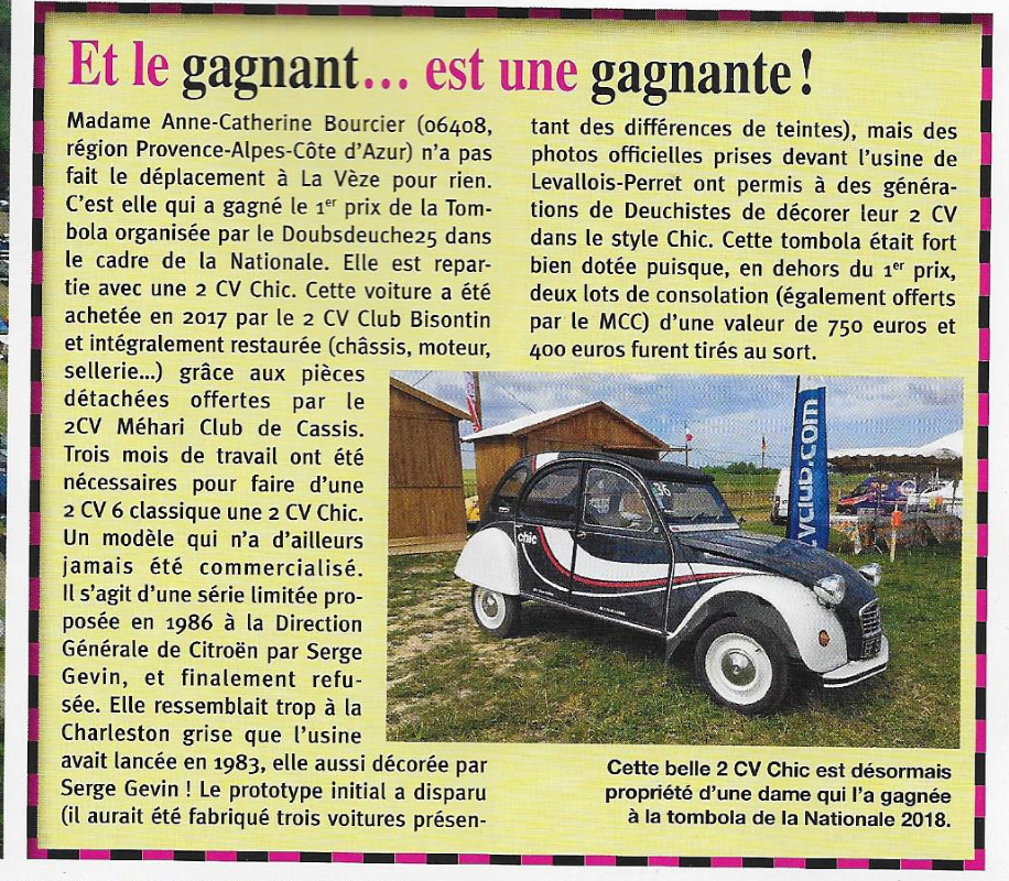 Petit rappel déontologique des Deuchistes : il est interdit de gagner deux 2cv à une tombola ou autre concours ! Il faut laisser la place et une chance aux autres ! NA !