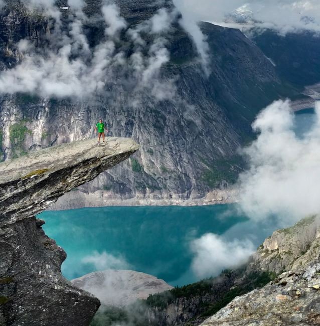 Par contre pour moi, ça n'a pas été de tout repos, mais le jeu en valais la chandelle: après une marche de 10 km, je suis effectivement arrivé à Trolltonga (la langue des trolls)