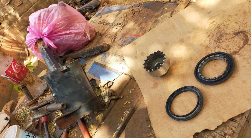 Préparation du bras avant avec pose du graisseur et changement du joint de la bague écrou
