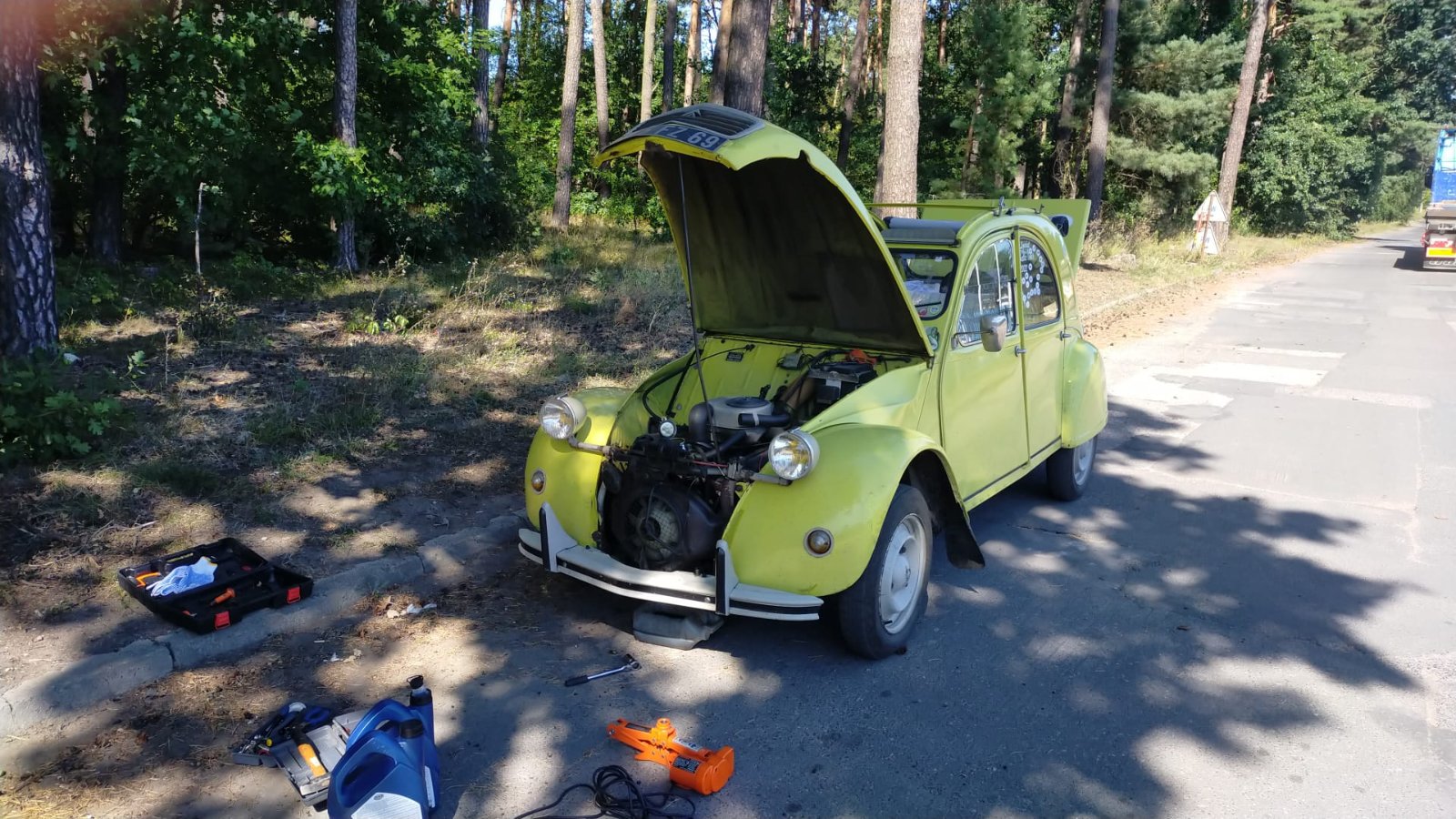 Je suis actuellement toujours en Pologne. Visitant la Mazurie avec des Hollandais qui ont la DS break blanche.