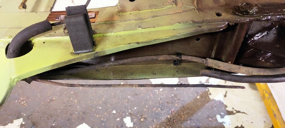Par contre quand j'ai transférer le tuyau de frein d'un châssis à l'autre, en essayant de ne pas modifier les différentes courbures, il a cassé net au niveau du tube de protection autour de la fixation de la traverse avant.