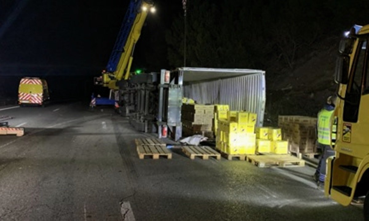Un camion de Ricard se renverse sur l'autoroute A 55. C'eût été mieux sur la rocade est à côté de chez Dédé, non ?