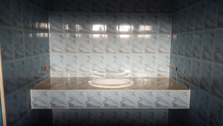 Le carrelage est maintenant fini, il reste encore les joints et la découpe du cercle de la table.