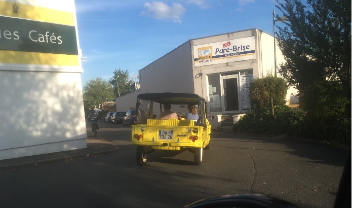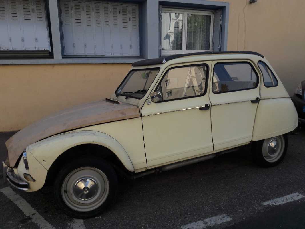 Eh non, mon fils.... Celui-là a le toit relevable... Mais il est bô ! J'ai vu cette Dyane près de chez moi et j'ai discuté avec le proprio qui m'a dit : J'en deux autres comme çà... Celle-là, j'y vais la faire repeindre et j'i pars en Tunisie avec ! Tout ça avé l'assent, bien sur !