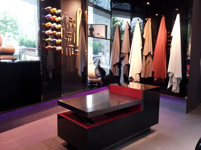 Impressionnant, le présentoir avec le cuir et les accessoires ! On se croirait dans les plus grandes marques premium !